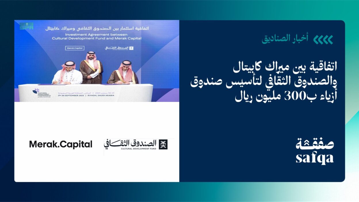 أخبار الصناديق الخاصة2 Min Read في2025-10-05 اتفاقية بين ميراك كابيتال والصندوق الثقافي لتأسيس صندوق أزياء بـ300 مليون ريال في إطار مؤتمر الاستثمار الثقافي الذي أقيم في الرياض برعاية وزارة الثقافة، وقع الصندوق الثقافي للتنمية اتفاقية مع…