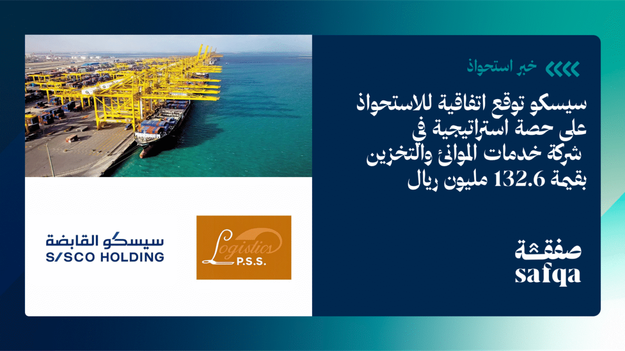 الاندماجات والاستحواذات2 Min Read في2025-10-07سيسكو توقع اتفاقية للاستحواذ على حصة استراتيجية في شركة خدمات الموانئ والتخزين بقيمة 132.6 مليون ريال أعلنت الشركة السعودية للخدمات الصناعية (سيسكو)، المدرجة في السوق المالية السعودية “تداول”، عن توقيع اتفاقية نهائية للاستحواذ على…
