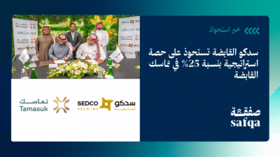 الاندماجات والاستحواذات1 Min Read safqa adminon2025-11-02 سدكو القابضة تستحوذ على حصة استراتيجية بنسبة 25% في تماسك القابضة أعلنت شركة سدكو القابضة، إحدى كبرى شركات الاستثمار في السعودية، بالتعاون مع مجموعة البلاغة القابضة، عن إتمام صفقة تستحوذ بموجبها سدكو على 25%…